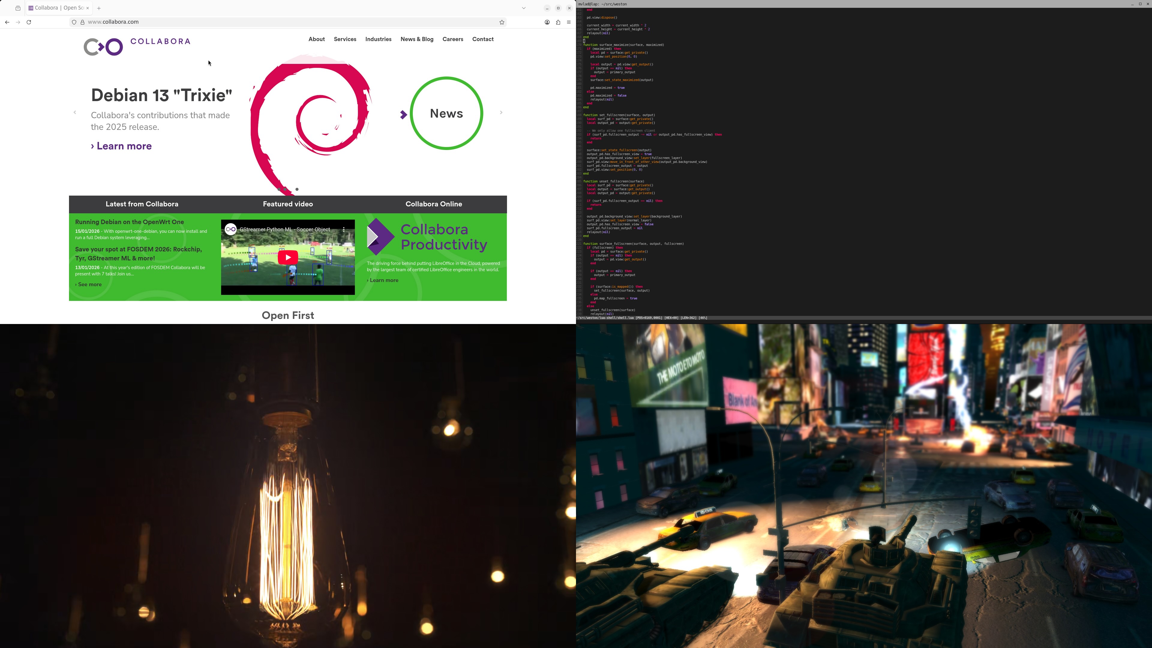 A sought-after feature is the introduction of a new shell, called the lua-shell. As the name stands, this includes the ability to customize window management and create shells written in the Lua programming language. Whereas kiosk-shell has been great for those special-purpose limited use cases, lua-shell gives people the flexibility to make their window management completely configurable, without having to maintain whole piles of C. To better exemplify how this works, we have included with this Weston 15 release a simple tiling shell which has been added in the configuration ini file for lua-shell to execute.
